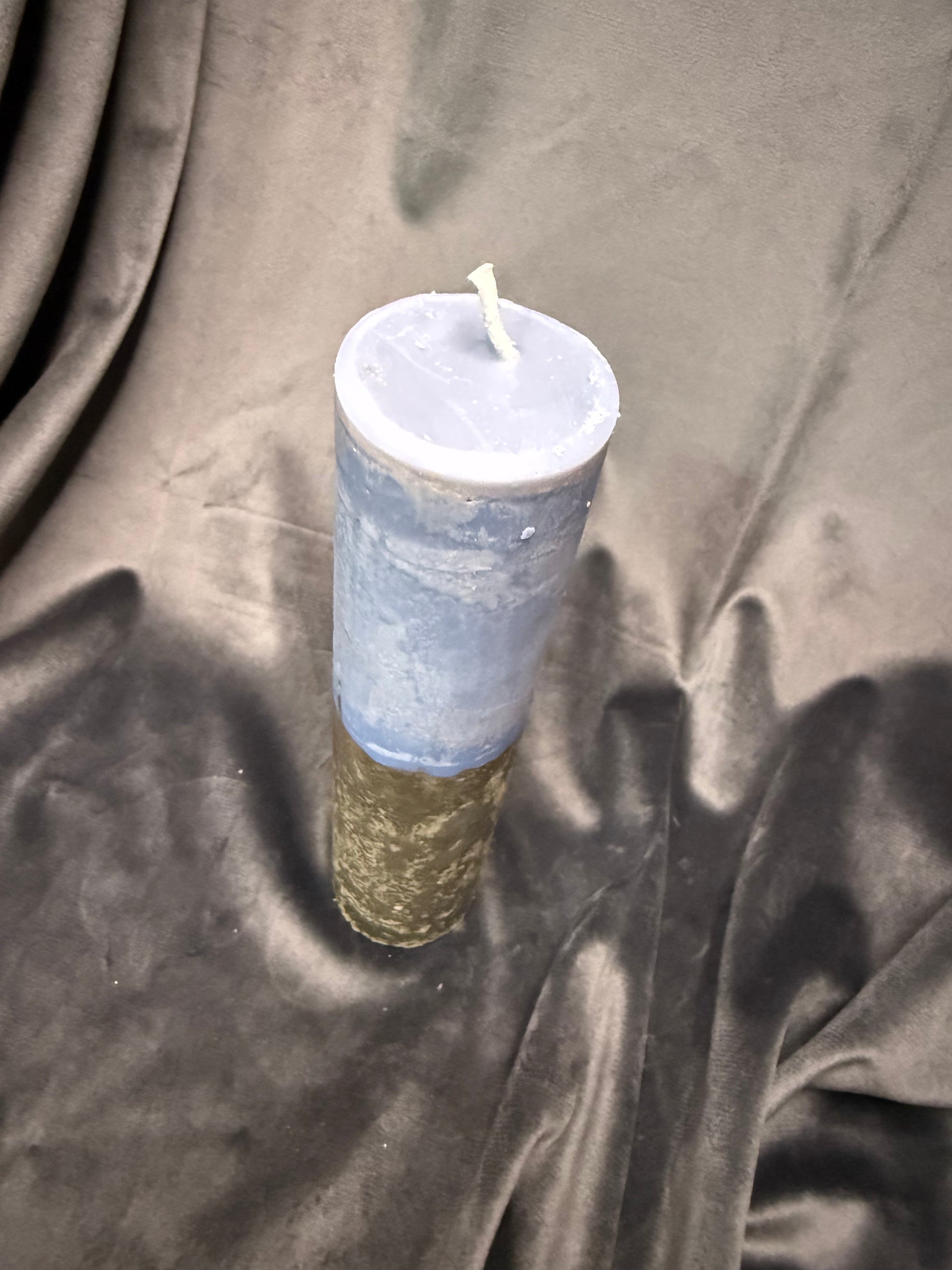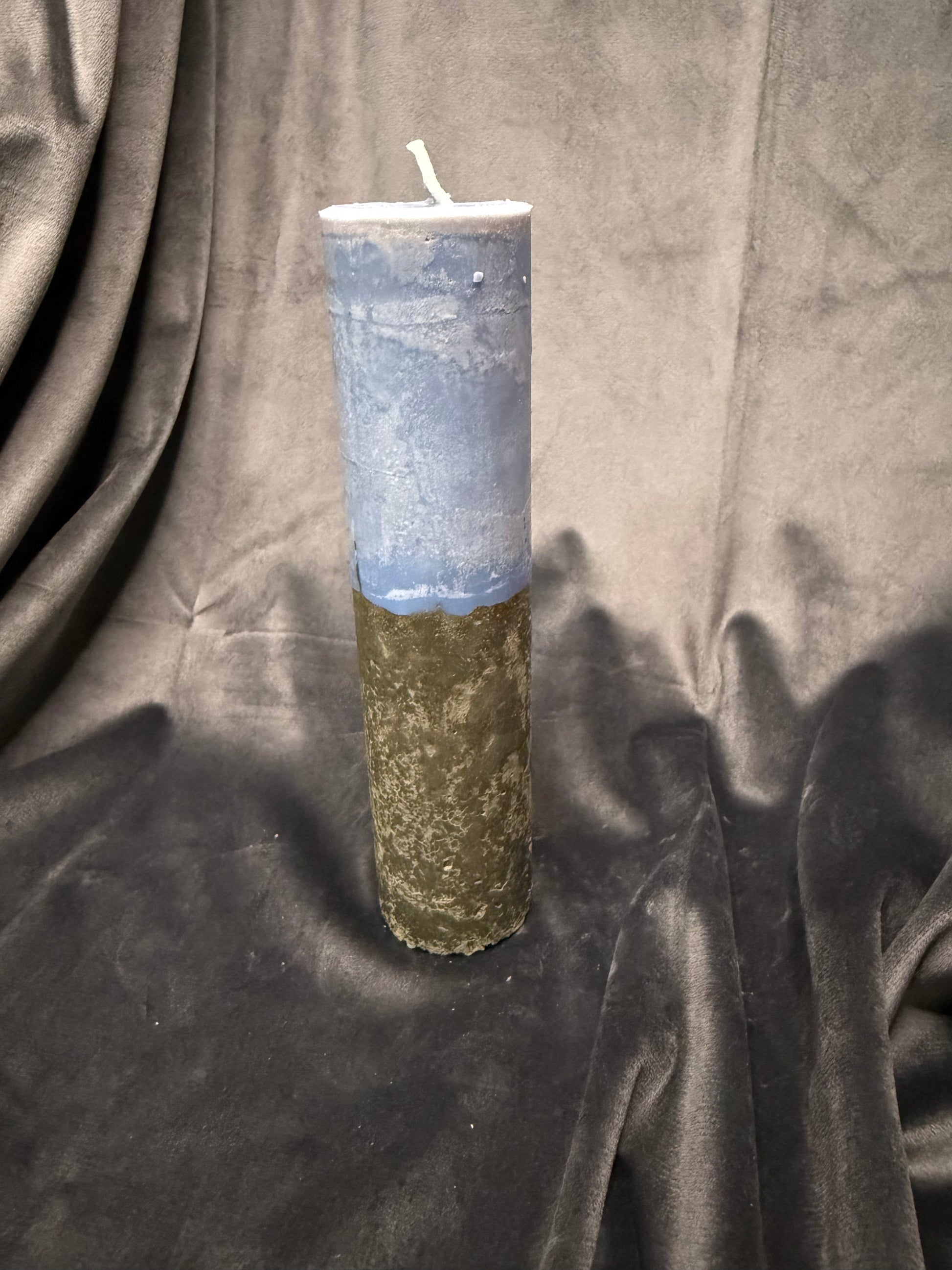 - „Kerze X: Bitte in Dunkelblau mit goldenen Akzenten“